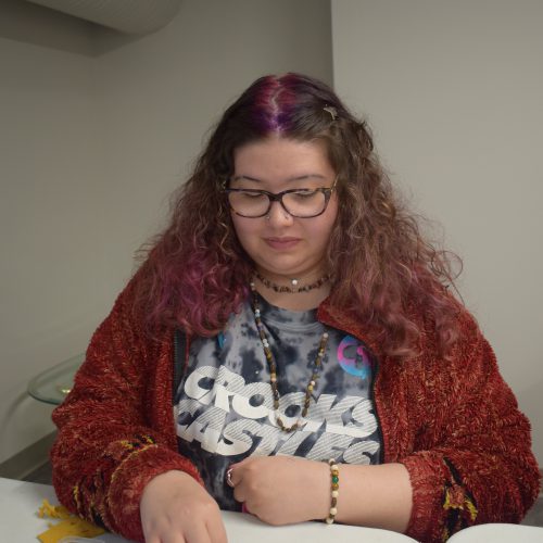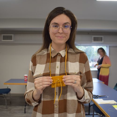 The art pieces shown below showcase the visual reflections of the Healing Circle/workshop participants and include Wolf Willow Bracelets, Ribbon Skirts, and Medicine Pouches. Scroll to learn about each art piece and the artist who created it.