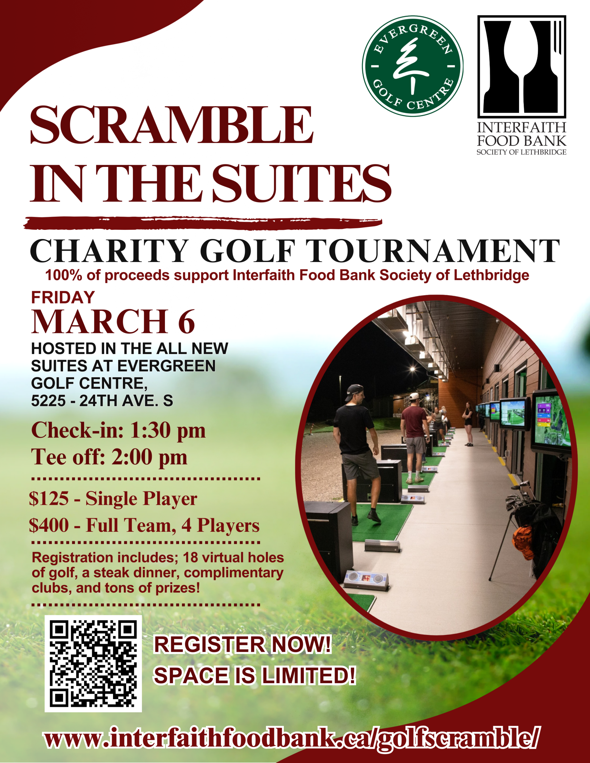 Join us Saturday March 6th for an exclusive event in the Suites at Evergreen Golf Centre! Proceeds from this event benefit Interfaith Food Bank Society of Lethbridge, enabling them to recognize the human dignity of those in need and provide food and access to services and resources generated from within our community.