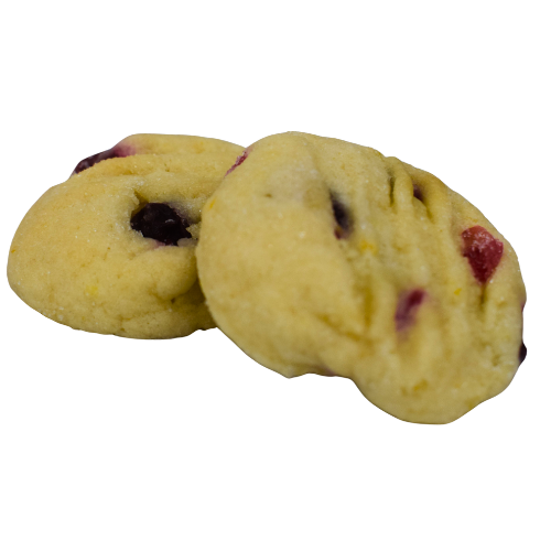 Flour, cranberries, sugar, butter, egg yolks, orange juice, orange zest, cornstarch, baking powder, table salt, baking soda